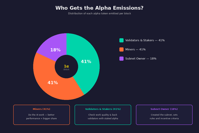 블록당 서브넷당 이미션되는 알파 토큰 1개는 세 그룹에 나눠집니다: