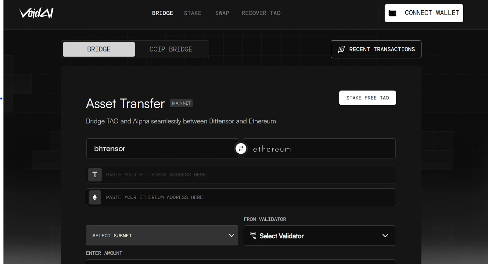 VoidAI(서브넷 106)는 Bittensor를 Solana의 DeFi 생태계와 연결함으로써 유동성을 측정 가능하고 인센티브화된 산출물로 변환한다. 크로스체인 브릿지와 래핑된 $TAO를 통해, 채굴자들은 Raydium과 같은 Solana AMM에 유동성을 공급하고, LP 토큰을 스테이킹하며, 검증된 기여에 따라 보상을 획득한다.