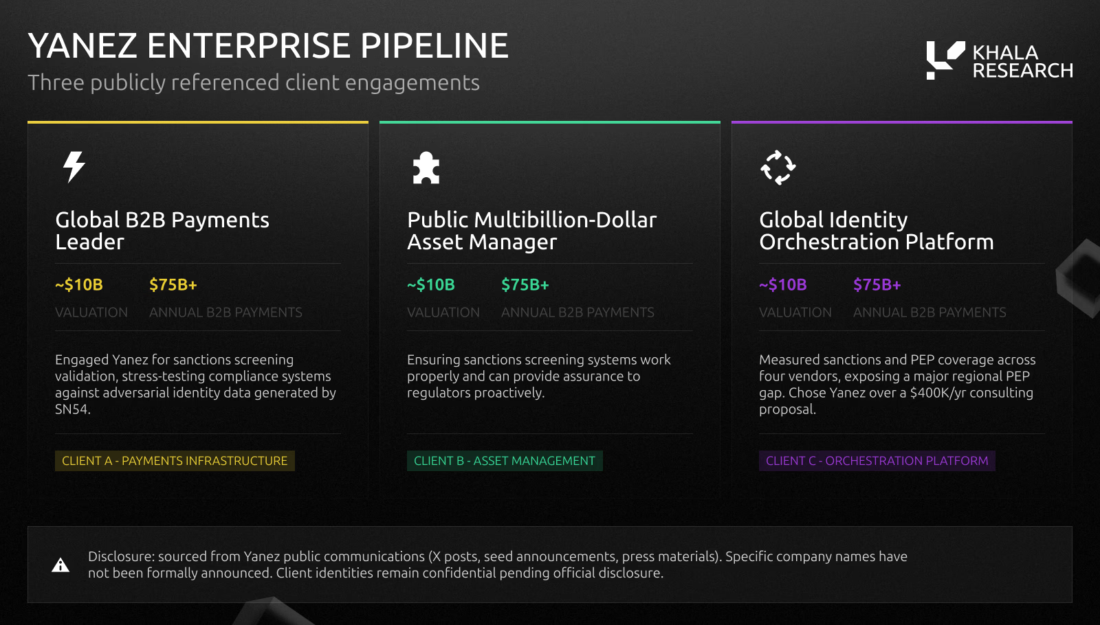 | 상태 | 수익 창출 중, 기업 고객 3개 + 파이프라인 20개 주장 |