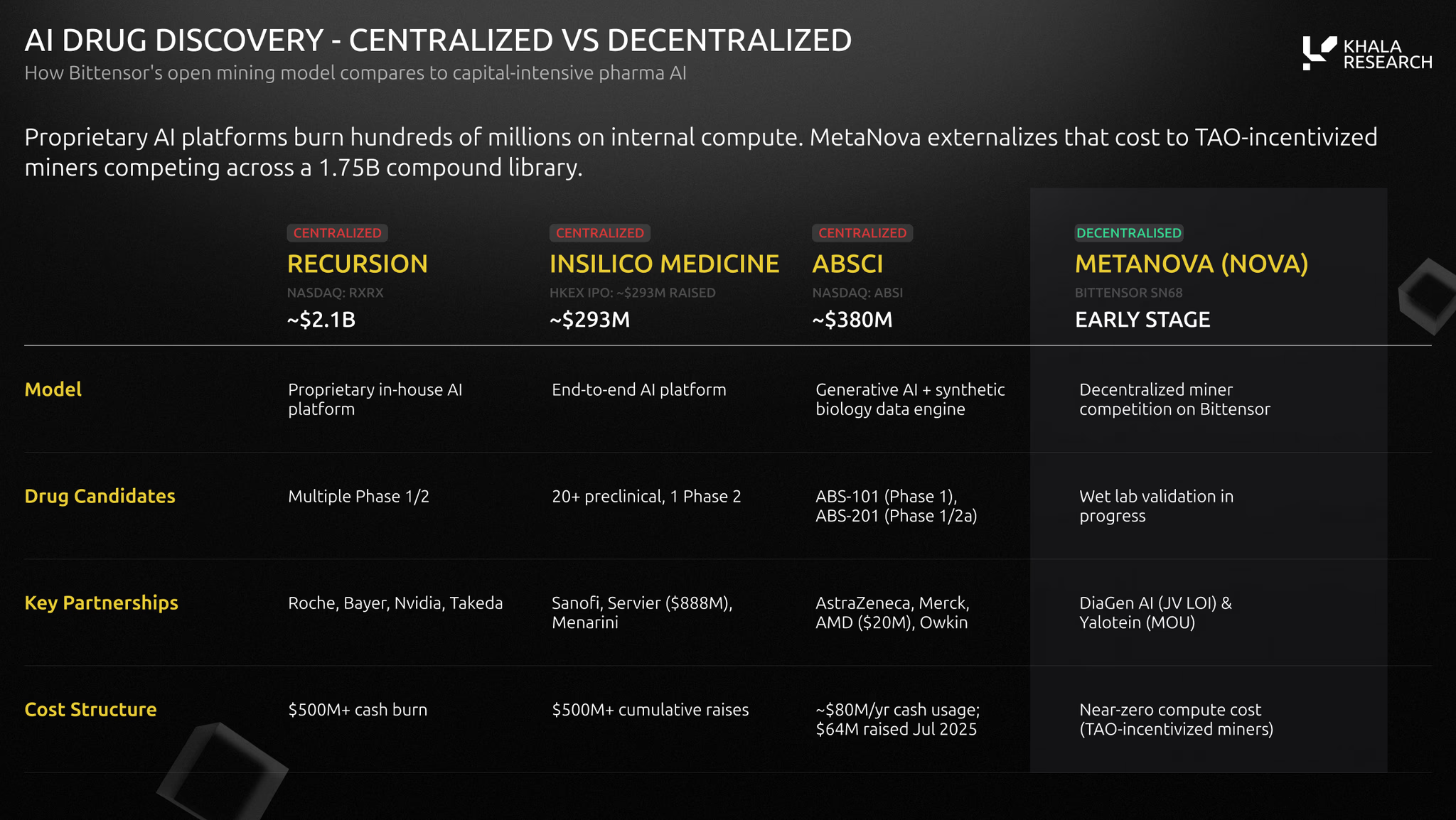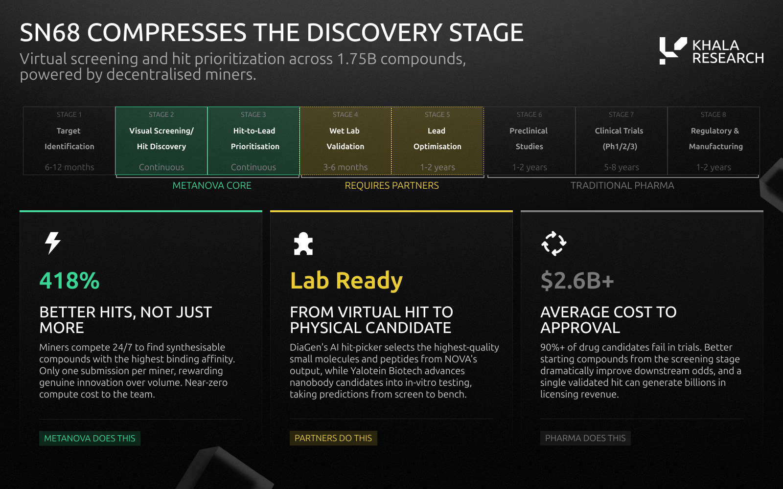 신약 발견은 구조적으로 망가진 파이프라인을 가진 $1.5조+ 산업이며, 단일 획기적 화합물이 수백만에서 수십억의 라이선싱 수익을 창출할 수 있습니다. Metanova는 상하이 기반 바이오텍 Yalotein Bio와 상위 50개 나노바디 후보를 실험실에서 테스팅하기 위한 MOU를 체결했습니다. 비대칭성은 극단적입니다.